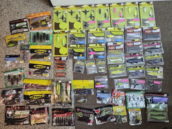 お客様より、人気ブランドを中心にハードルアー・ソフトルアーを 合計60点まとめてお持ち込みいただき、丁寧に1点1点市場価格を調べたうえで査定させていただきました。